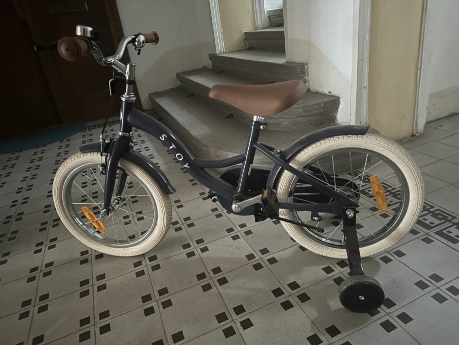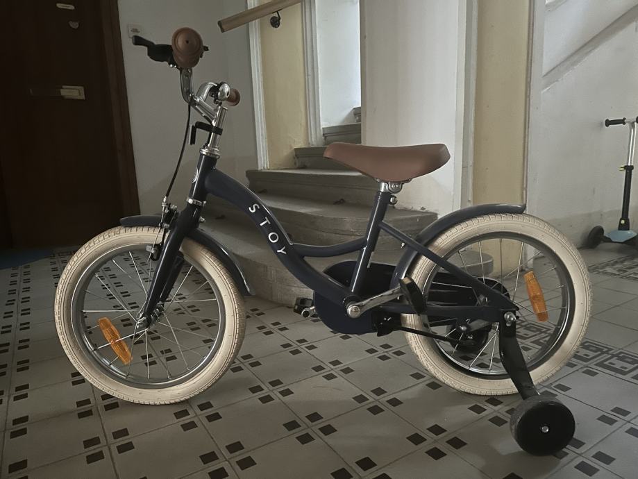 Djeciji bicikl vintage izgleda skandinavskog brend Stoy s pomoćnim kotačima, placen 260eur i vožen dva puta. Boja navy