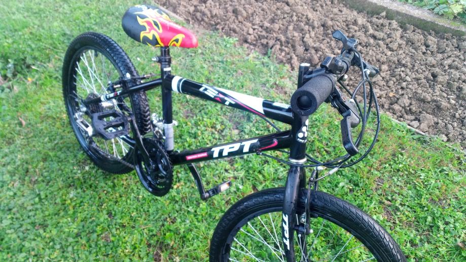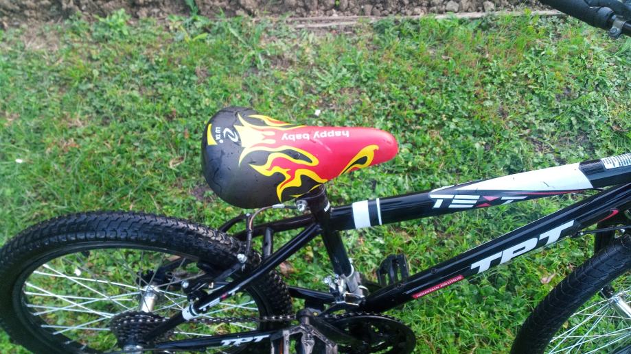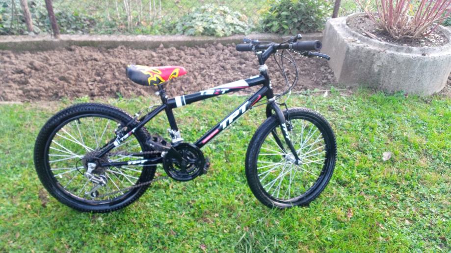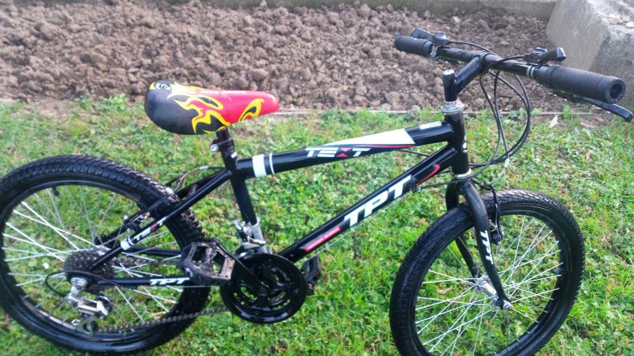 Dječji bicikl Tpt, mat crne boje, kotači veličine 20", 12 brzina sa potpuno ispravnim prijenosom sprijeda i straga, gume odlične, sjedalo novo.