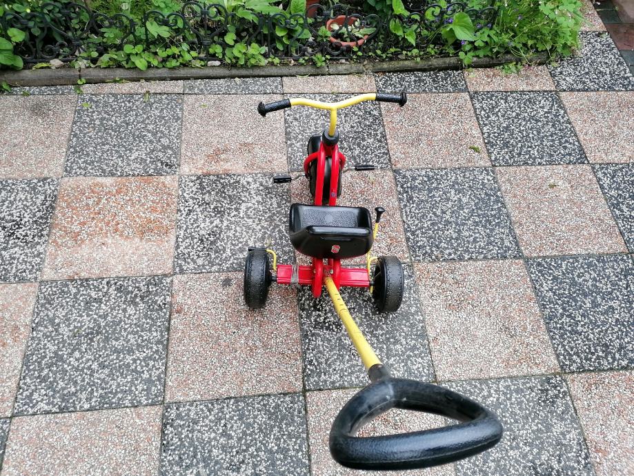 Prodajem tricikl puky za djecu, izuzetno kvalitetan, proizvođač Njemačka.Ima ručnu kočnicu, drška koja se može ukloniti pa veće dijete može i samostalno voziti.