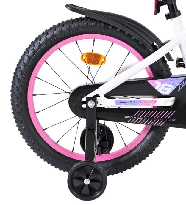Dječji bicikl Volare Lily od 18 inča prekrasan je bicikl za mlade djevojke koje vole voziti sa stilom. Svojom svježom bijelom bojom, ljubičastim i ružičastim detaljima te upečatljivim ružičastim obručima i upravljačem, ovaj bicikl zaista privlači poglede.