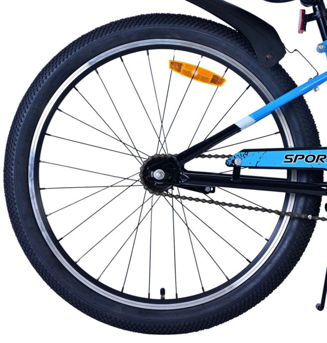 Volare Sportivo od 24 inča spaja vrhunsku kvalitetu s modernim dizajnom!Sigurnost je na prvom mjestu! Stoga, ovaj cool bicikl ima ručnu kočnicu i nožnu kočnicu. Osim toga, bicikl ima zvono i reflektore u kotačima. Misli se i na udobnost. Prekrasan crni Volare bicikl s plavim detaljima ima luksuzno mekano sjedalo i posebno mekane ručke, praktičan stražnji nosač i čvrsti okvir koji može izdržati. Nadalje, bicikl ima postolje tako da ostaje uredan i jaku bravu. Kako biste uživali u biciklu što je dulje moguće, ima ekstra dugu sjedalicu tako da bicikl još više raste s djetetom, a upravljač je podesiv po visini. Ukratko: bicikl vrhunske kvalitete u kojem vaše dijete može uživati godinama!