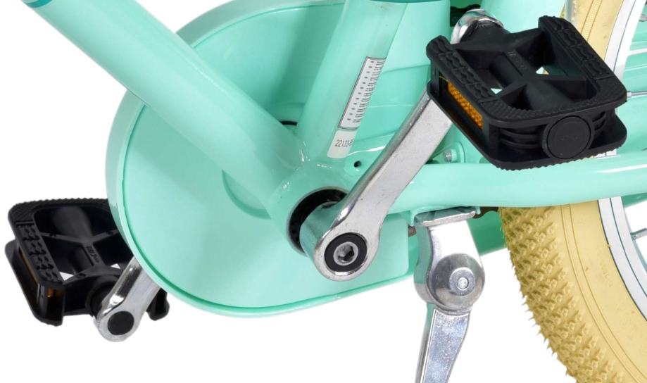 Štitnik za lanac je zatvoren kako bi zaštitio male prste, Bicikl ima dvije ručne kočnice, ali nema podmetač, Moderan dječji bicikl s praktičnim prednjim nosačem, Upravljač je podesiv po visini