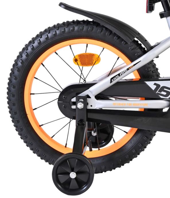 Sigurnost je najvažnija! Zato ovaj cool bicikl ima ručnu kočnicu, kočnicu s ručnim kočnicama i zatvoreni štitnik lanca. Također ima zabavno zvono. Vodilo se računa i o udobnosti. Prekrasan srebrni Volare bicikl s narančastim detaljima ima luksuzno mekano sjedalo, elegantan okvir koji može izdržati nekoliko udaraca i ekstra duge blatobrane koji sprječavaju ulazak prljavštine. Kako biste mogli uživati u biciklu što je dulje moguće, ima ekstra dugu cijevi sjedala, što mu omogućuje da još više naraste. Dolazi sa svim potrebnim montažnim priborom za sastavljanje!