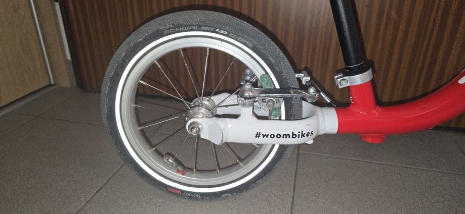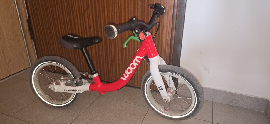 Woom 1 - balance bike, dječiji bicikl bez pedala. Odličan za uzrast 1,5-3,5 godina. Veličina kotača 12". Bicikl je korišten ali je očuvan, bez oštećenja sa originalnim Woom gumama