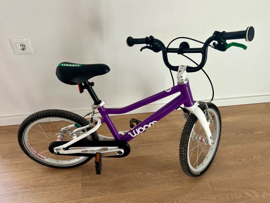 Prodajem woom 3 ljubicaste boje sa original nogom. Kupljen nov prije godinu dana, maksimalno ocuvan. Vrlo malo vozen od strane jednog djeteta, bez ogrebotina.