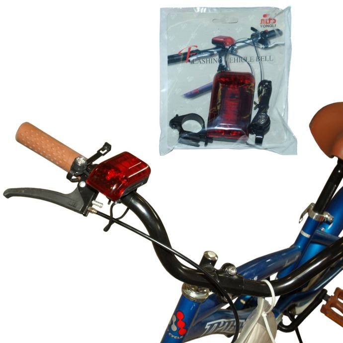 Višefunkcionalno zvono za vozila, zvoni i svijetli Može se primijeniti na brdskim, dječjim, trkaćim i običnim biciklima, kao i na motornim vozilima. Na pritisak tipke prekidača, zvono će treperiti 3 sekunde i stalno bljeskati. Na ponovni pritisak bljesak nestaje. Za rad su potrebne 2 x AA baterije (nisu priložene).
