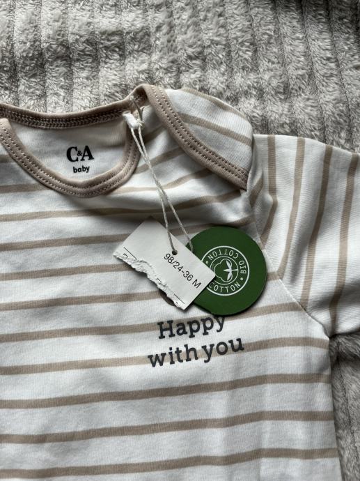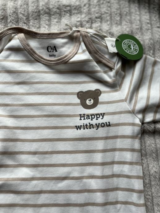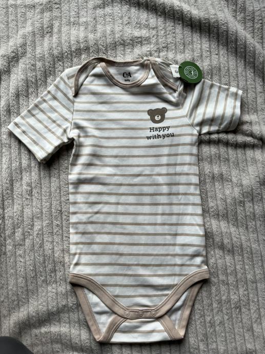Prugasti bodi kratkih rukava medo 98, C&A. Novo s etiketom