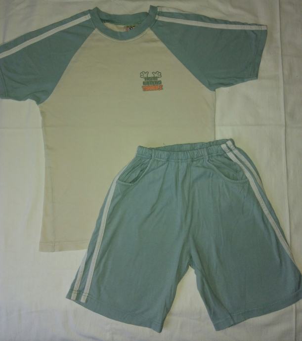 Lijep i ugodan (100% pamuk), hlače imaju džepiće, cijena je za komplet, ne prodajem ih pojedinačno