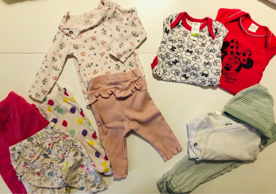 2 kompleta (komplet H&M cvijetni bodi i roze hlačice, obučen samo za izlazak iz bolnice, plaćen 100kn)