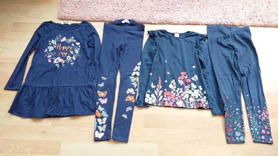 Komplet majica i tajice br. 110 / 116 za djevojčice, lot od dva lijepa kompleta, svaki se sastoji od majice dugih rukava i tajica na kojima su isti motivi kao na pripadajućoj majici.