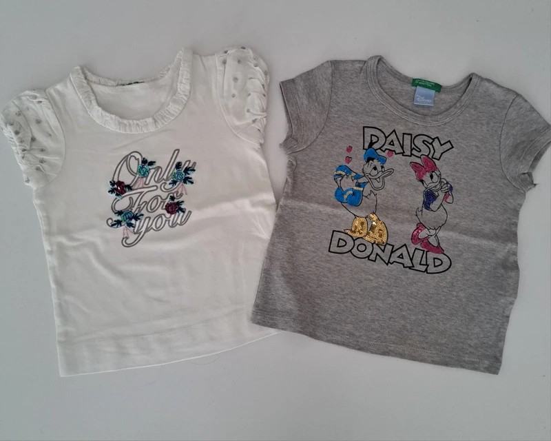 Lot iznimno očuvane, nenošene ili jako malo nošene odjeće u veličini 92 ili za dijete od 24 mjeseca. Sastoji se od 5 majica bez rukava, 2 majice kratkih rukava, 1 rompera i 1 kratkih hlača. Poznati brendovi (Benetton La Redoute, M&S, C&A), kvalitetne pamučne tkanine.