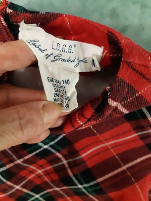 1. LOGG karirana crvena haljina dugih rukava, naprijed 2 falde, 2 prednja dzepa. Sirina prsa, prednja strana: 37 cm, duzina: 69 cm, rukav: 48 cm.