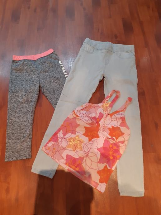 3 Četvrt sive tajice s roza gumom, struk, prednja strana: 28 cm, bokovi: 36 cm, duzina: 63 cm, dubina prednjice: 23 cm.