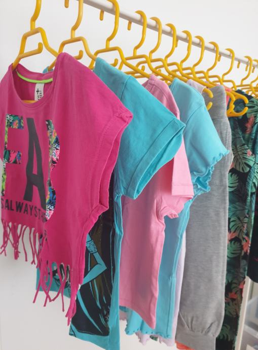 Savrseno ocuvan lotic jedva nosene i nenosene robice: - sarena haljinica - kratki lila kombinezon - dugi sareni lagani ljetni kombinezon - 2 komada tajci/ljetnih hlaca - 3 majice kratki rukav - 1 top s resicama - 1 majica bez rukava lila s pticicama. Na poklon jos nekoliko komada vise nosene odjece. Za vise detalja, mjere i pojedinacne cijene molim Vas provjerite profil pod 134/140. Postarina nije ukljucena u cijenu, moguca primopredaja u Zagrebu. Slobodno pitajte sve sto Vas zanima. :-)