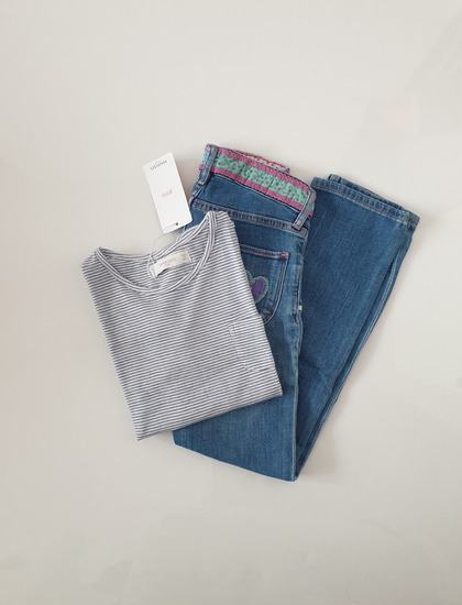 Predivan lotic koji se sastoji od gornjih dijelova jos s originalnom etiketom, a ostalo nenoseno ili jednom obuceno: (Tom Tailor haljinica PRODANO) 1. Mango majcica 3/4 rukavici s ET 2/3. 2 majice kratki s ET 4. lagane rastezljive trapke HM 5/6. 2 rastezljivih kratkih hlacica HM i Mango 7. Mana majcica kratki sa sljokicama (deklarirana za 5 ali je veca od svih ostalih majcica, sigurno kao 122 pa je stoga namjerno stavljena u ovaj lot) i 8. sarene 3/4 hlacice Za vise detalja, mjere i pojedinacne cijene molim slobodno pitajte. Postarina nije ukljucena u cijenu, moguca primopredaja u Zagrebu.