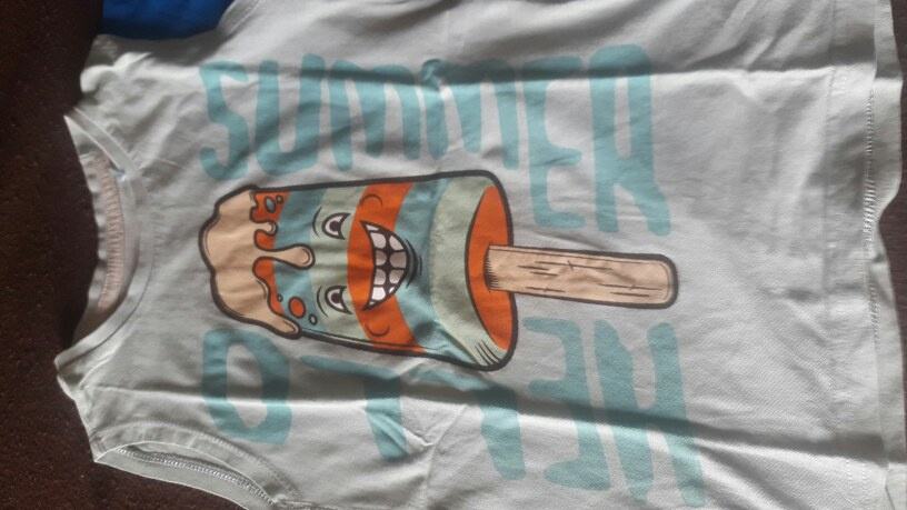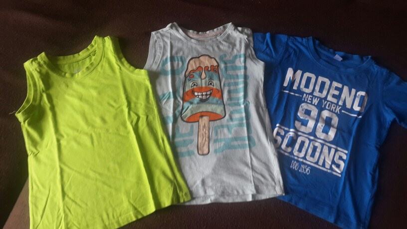 Dječje majice. Veličina 116. Plava kratki rukav. Zelena i sladoled bez rukava. Pamučne. Jako dobro očuvane bez flekica i oštećenja.