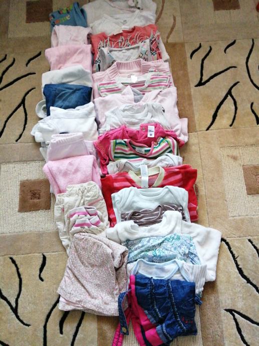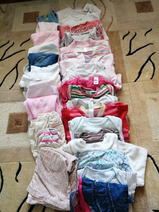 Ima jako puno toga, sve je jako malo noseno. Ima brodica kratkih rukava dugih, majica hlacica, kompleta, haljina, trenirka.... Do 6 mj. Nista nije osteceno niti poflekano.27 kom.