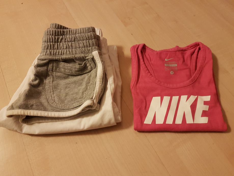 Nike komplet sadrzi sive kratke hlacice, bijele hlace 3/4 i rozu majicu bez rukava. Hlace su velicine 3-4 godine, majica 4-5 godina. Dostava ukljucena po dogovoru.