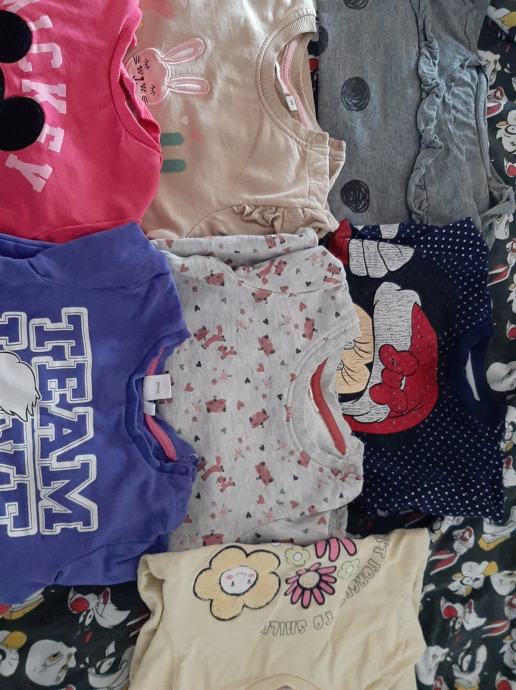 Prodaju se duge majice za curicu, velicina 98, 7 komada, cijena 7€ za sve, po komadu 1€. Upitati na 099/8000-555.