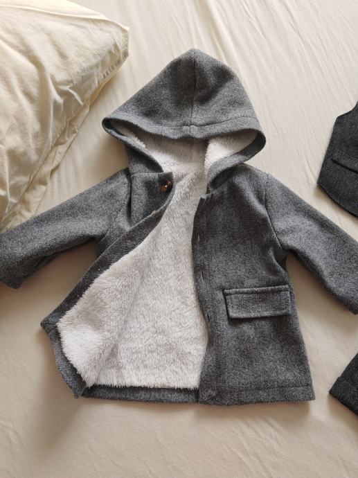 -elegantna siva jaknica (kaput) s kapuljačom, toplo podstavljen
