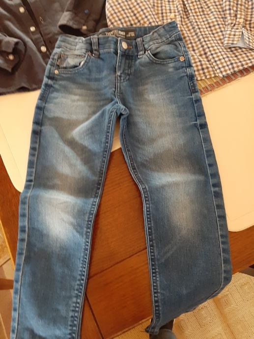Teranova traperice 116/122 sa elastinom kao nove i dvije kosulje 122 jedna iz reserveda a druga iz hm-a par puta obucene. Lot 100kn. Mogucnost slanja postom.
