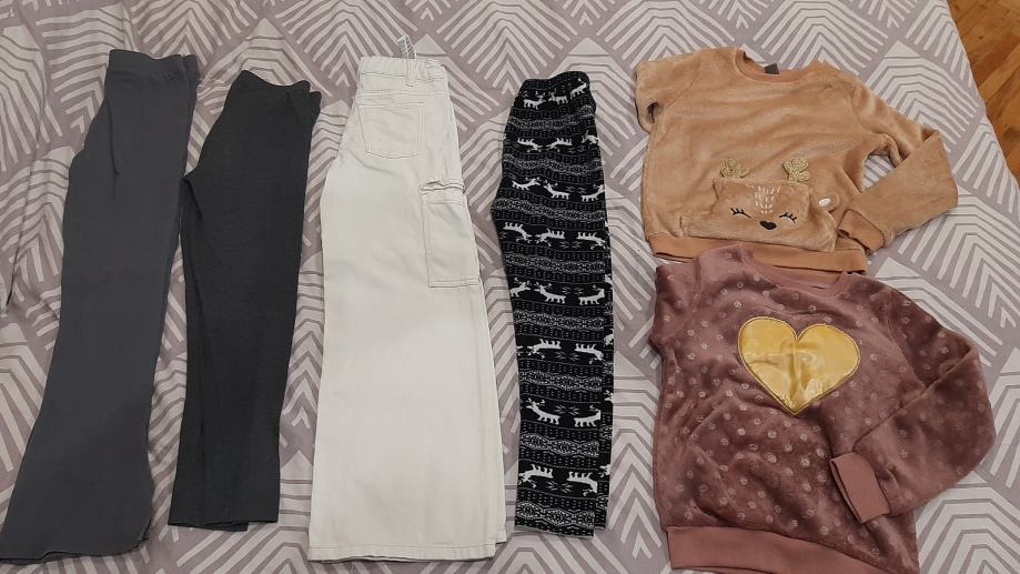 Zimski lot za djevojčice. Sadrži hlače,tajice, 2 debele majice,duksu, vunenu haljinu,prsluk,tanja pidjama. Sve u veličini 134.