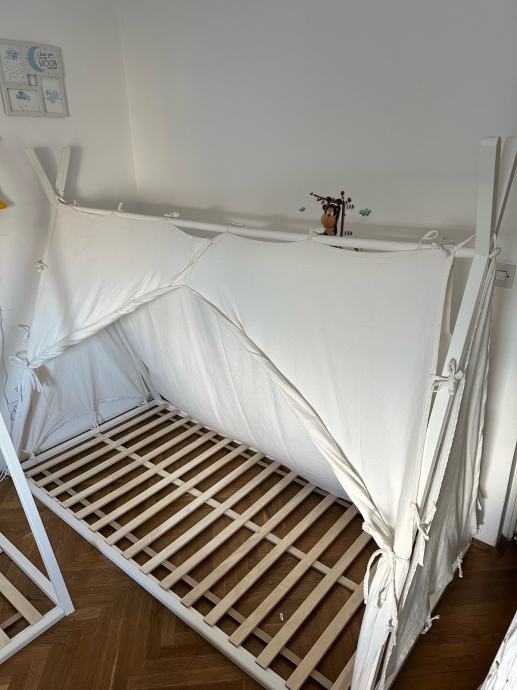 Prodajem Maralis Kave Home krevet korišten 9 mjeseci (okvir+podnica+ šator 100% pamuk) Prodaja je zbog preseljenja. Okvir je bijele boje i uz njega dolazi i šator koji se zaveže za konstrukciju. Madrac nije uključen. Cijena jednog: 180€