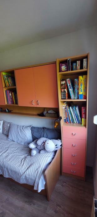 Krevet ima ladicu s dodatnim ležajem. Dimenzije za madrac su 200 + 90 dok je u ladici madrac 190 x 80.