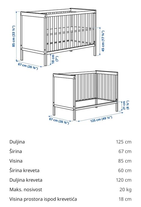 Super stanje kompleta, očuvano i bez oštećenja. Gratis plahte i Lenast zaštite za madrac, također sve iz Ikee.