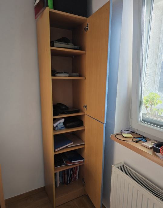- ormar uski (za odjeću/knjige), 2 kom, 44x40x204cm (šxdxv).