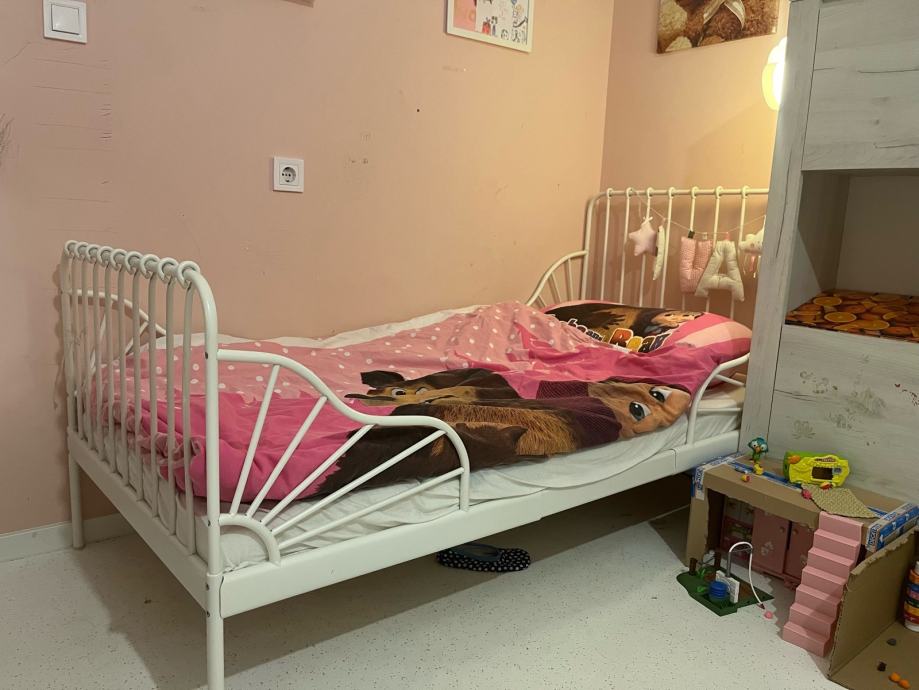 Dječji krevet 80x200, produljivi, kupljen u IKEA, komplet sa madracom i podnicom. Korišten 4 godine, bez oštećenja, kao nov. U pola cijene, novi komplet u IKEA 200€. Moguva dostava do Zagreba.