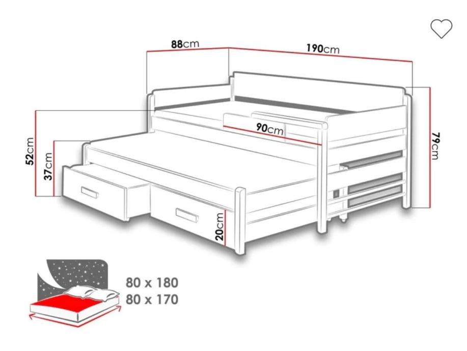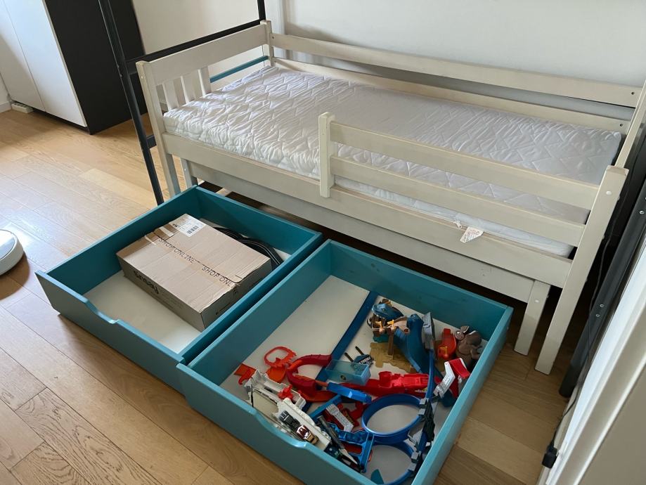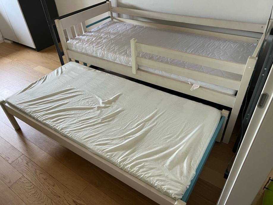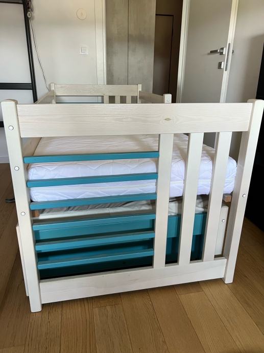 Dječji krevet sa pomoćnim krevetom i ladicama za stvari. Madrac glavnog kreveta dimenzija 80x180, pomocnog 80x170. Sve dimenzije u slikama. 100 EUR