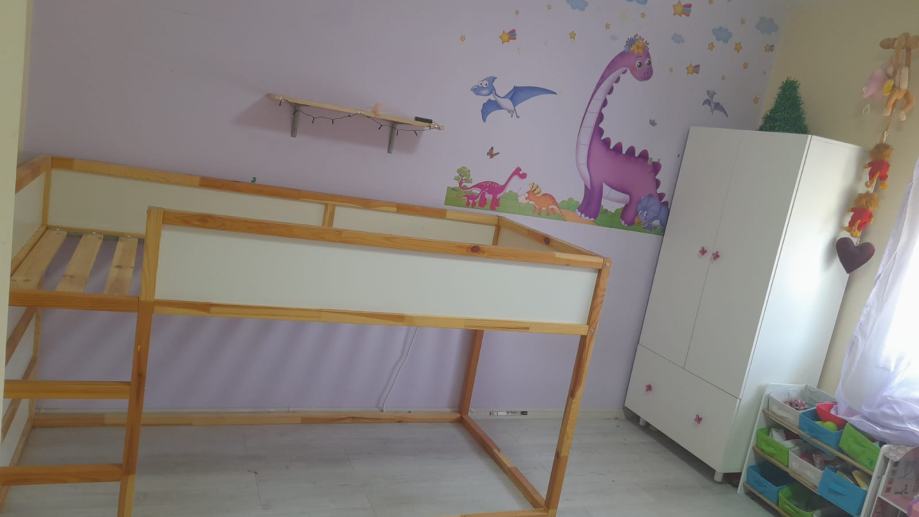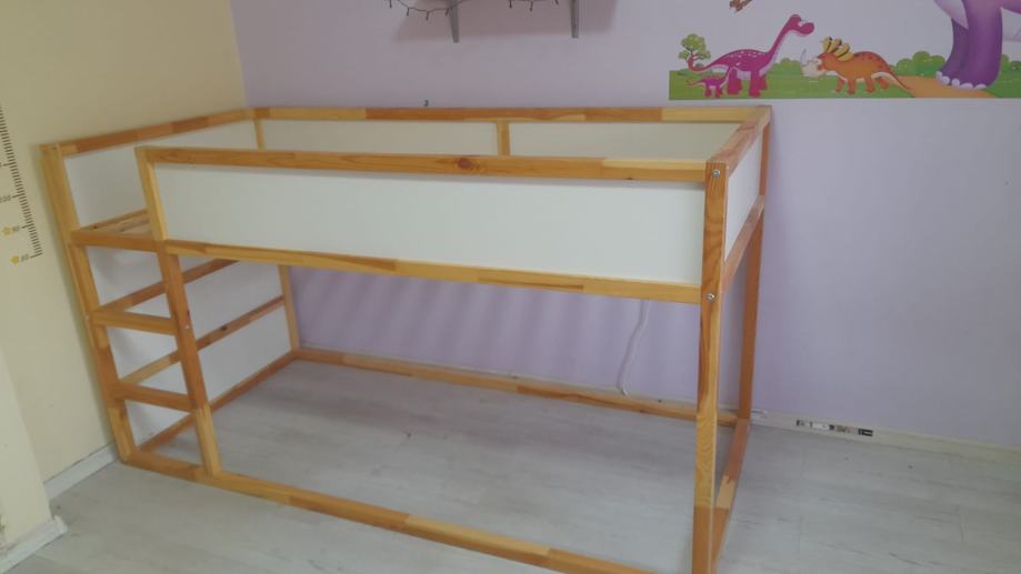 Prodajem dječji krevet kupljen u IKEI, krevet može biti na kat ili normalan, sami prilagođavate potrebama djeteta. Kao krevet na kat savršen je za manje prostorije, jer područje ispod kreveta može poslužiti kao prostor za igru, ili pak kao područje za pohranu igračaka i slično.