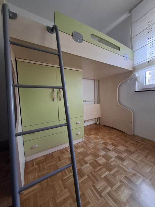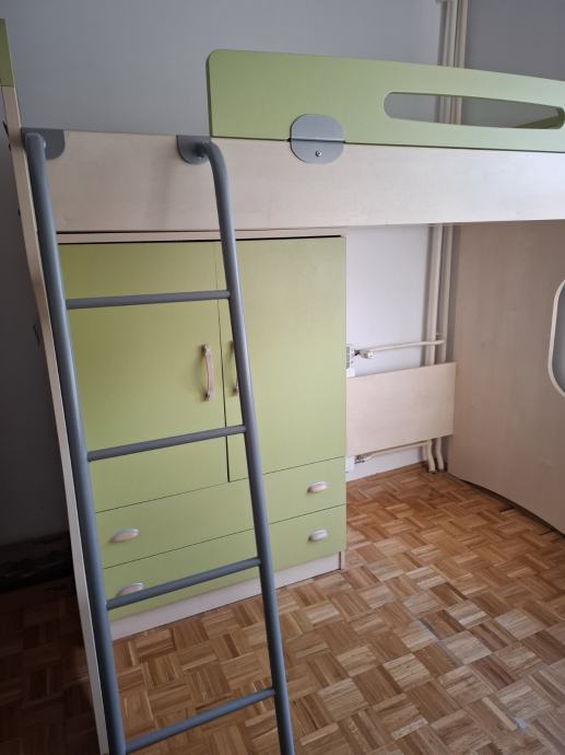 Radi se o krevetu na kat sa metalnim ljestvama, zelenkastih (pistacio) detalja, kupljen u PRIMA-i, u odličnom stanju.