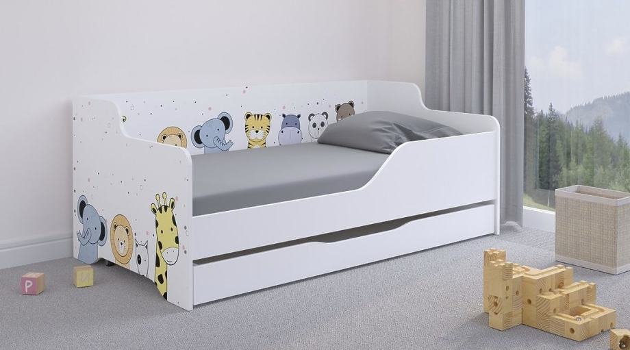 Dječji krevet s naslonom LILU 160 x 80 cm - ZOO / životinje motiv