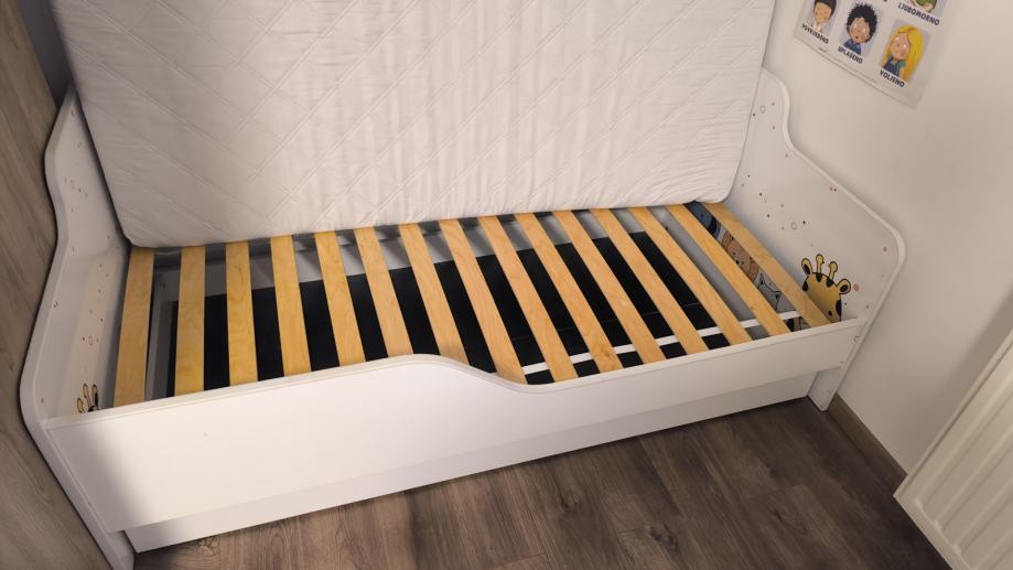Krevet je izrađen od visokokvalitetne laminatne ploče za namještaj.