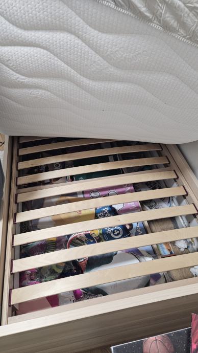 Dimenzija 90 x 200 cm. Krevet dolazi u kompletu s podnicom i madracom te dvije velike ladice.Nigdje nije da je potrgan ili oštećen.