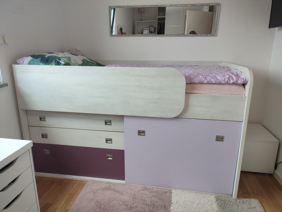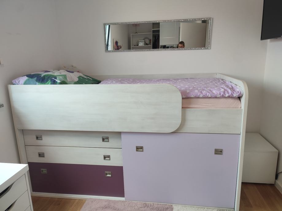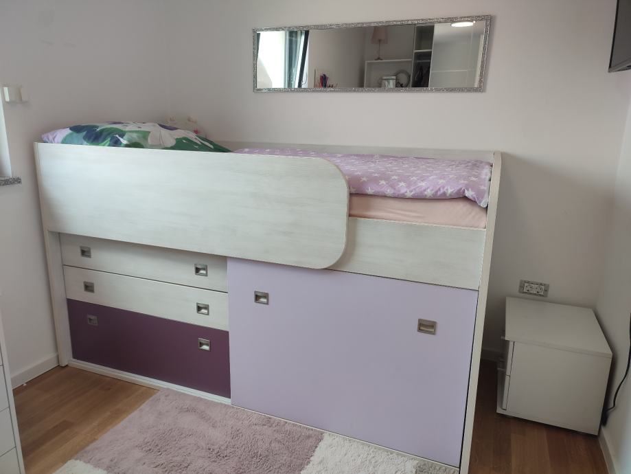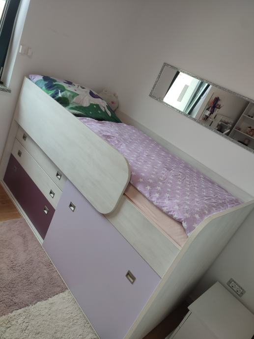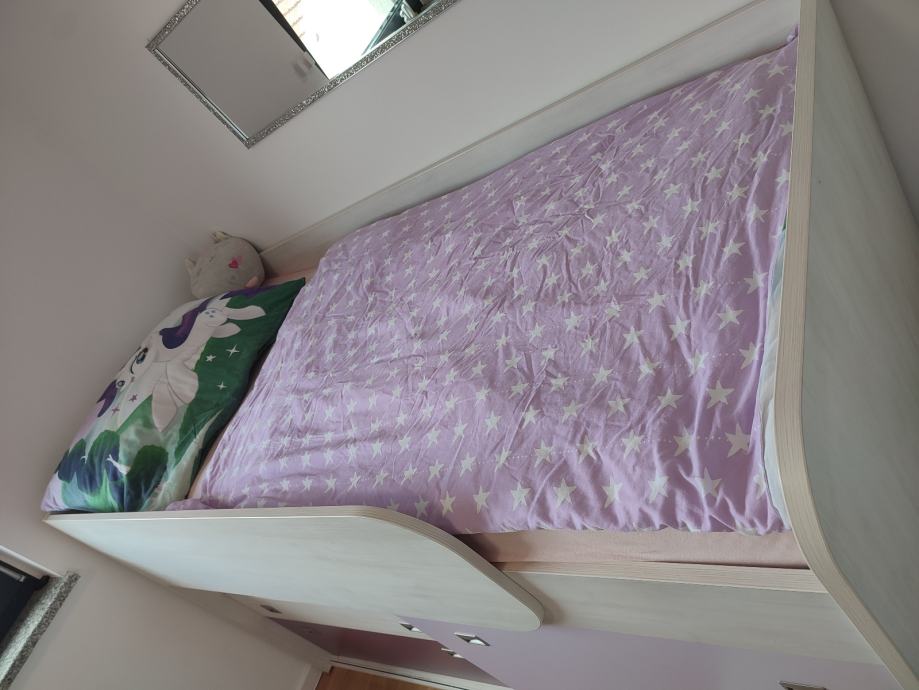 Prodaje se veoma kvalitetan očuvan i potpuno ispravan krevet s podnicom i madracem. Krevet je povišen a ispod su police i ladice ( ormar). Sve informacije na 095/1919538