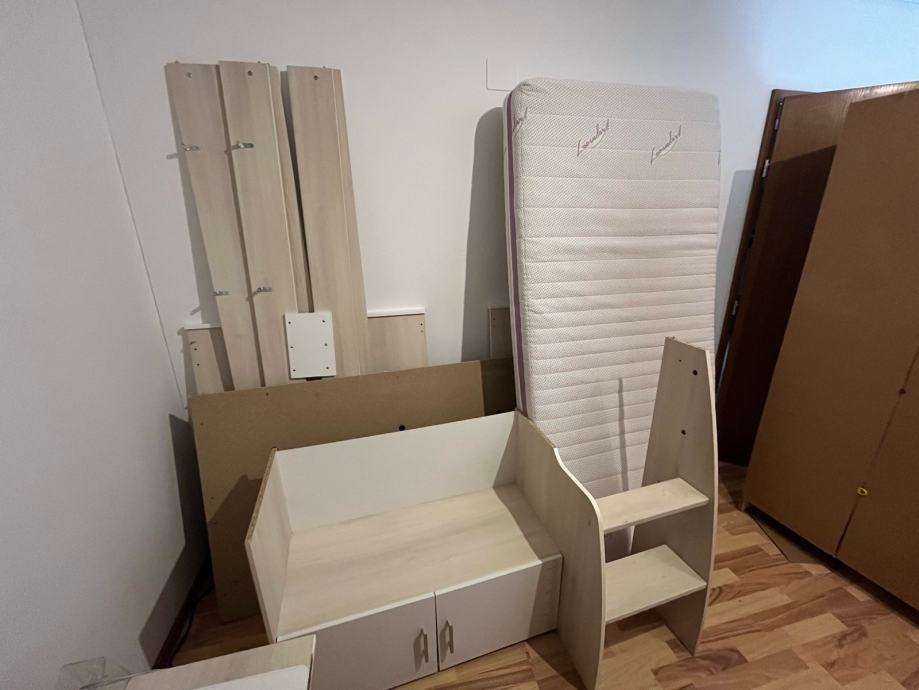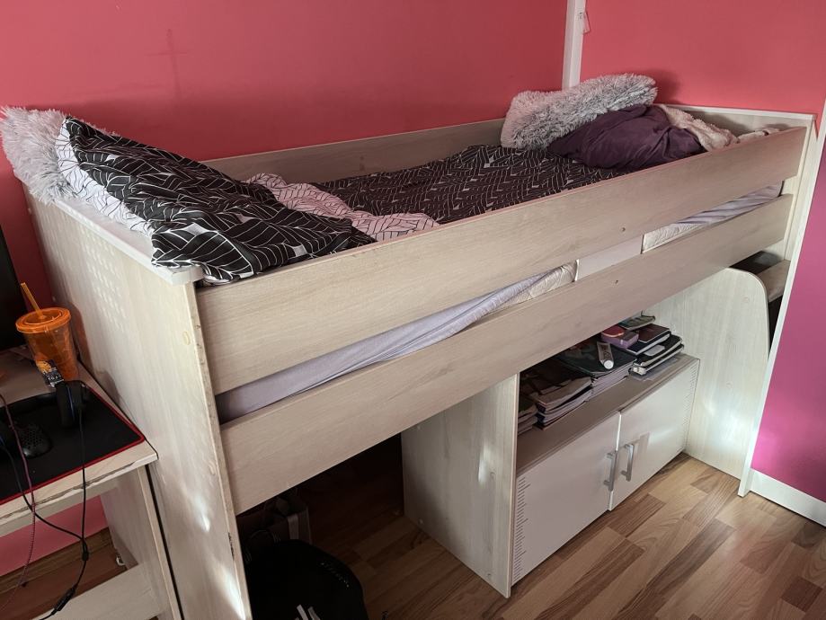 Prodajem povišeni dječji krevet u super stanju. Ispod kreveta se nalazi ormarić za knjige. Krevet je djelomično rastavljen da može stati u automobil. Za navedeni krevet posjedujem i novi dormeo madrac po cijeni od samo 60 eura (komplet krevet + madrac 120 eura). Cijena madraca u trgovini je trenutno oko 240 eura. Razlog prodaje jer sam curama kupio novu sobu.