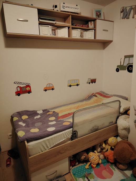Prodajem dječji krevet s madracem (bez zaštitne ograde) i viseći element. Krevet ispod ima 2 ladice i 2 pretinca za pohranu. Dobro očuvano, staro 2 godine. Hitno!