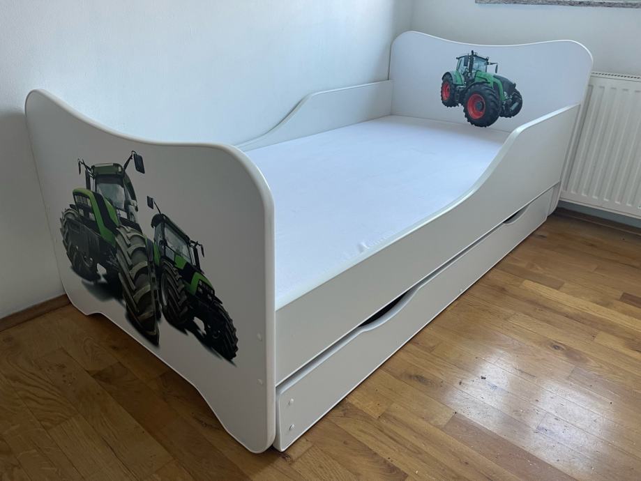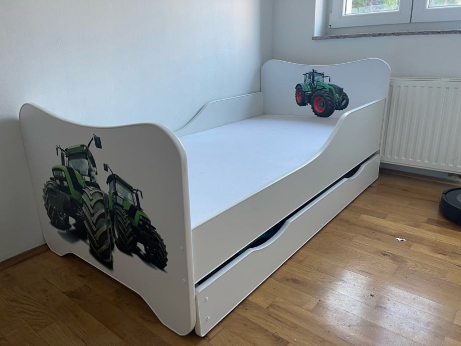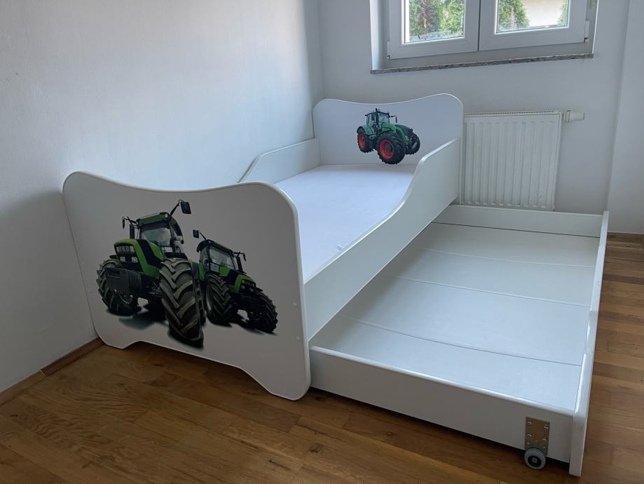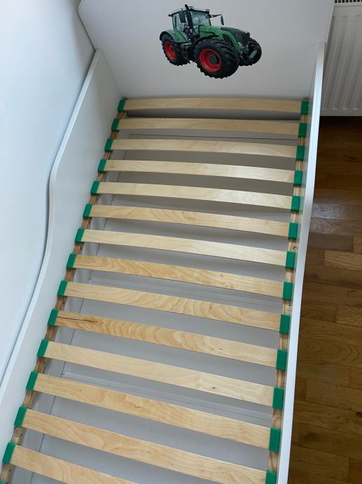 Prodajem kvalitetan djecji krevetic dimenzija 165x85 cm, sa pripadajucom podnicom i madracom te dodatnom izvlacnom ladicom, koja je predvidena za drugi lezaj ili se moze koristiti kao spremnik za posteljinu, takoreci novo (poklon koji nije koristen), 100 eura.
