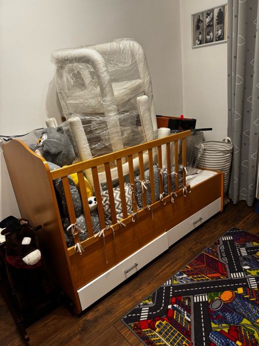 Poklanjam dječji krevetic s madracem 160cm i dodatkom za presvlačenje novorođenčeta s ladicama koji nije na slici jer je odmontiran. Drveni dio ima malo oštećenja i korišten je, madrac od 160 cm je kompletno nov i nikad nije spavano na njemu. Preuzimanje na Zametu, krevet nije razmontiran i u komadu bi se trebao i preuzeti.