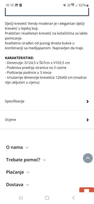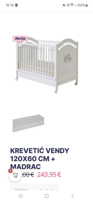 Poklanjam djecji krevetic Vendy, mozete na internetu pogledati kako tocno izgleda original, mi smo svoj razmontirali prije nego smo se sjetili uslikati :) Dimenzije su u slikama, a krevetic poklanjamo. Inace je na kotacice no moze se koristiti i bez njih. Jednu nogicu na mjestu gdje ide kotačić treba popraviti. Madrac ne dolazi u paketu s njim. Osobno preuzimanje u Zagrebu, Tresnjevka.