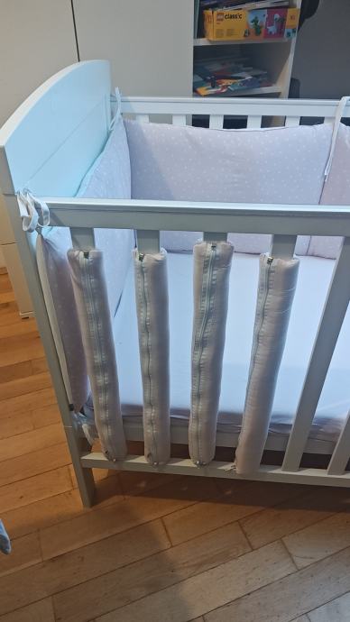 Dodatno uz krevetić ide madrac, mekana zaštita od udarca u roznoj boji.