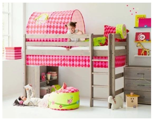 Sastoji se od tri zavjese, kariranih produzetaka i tunela, zajedno s krevetom srednje visine kao na prvoj slici + zastori kao na zadnjoj.
