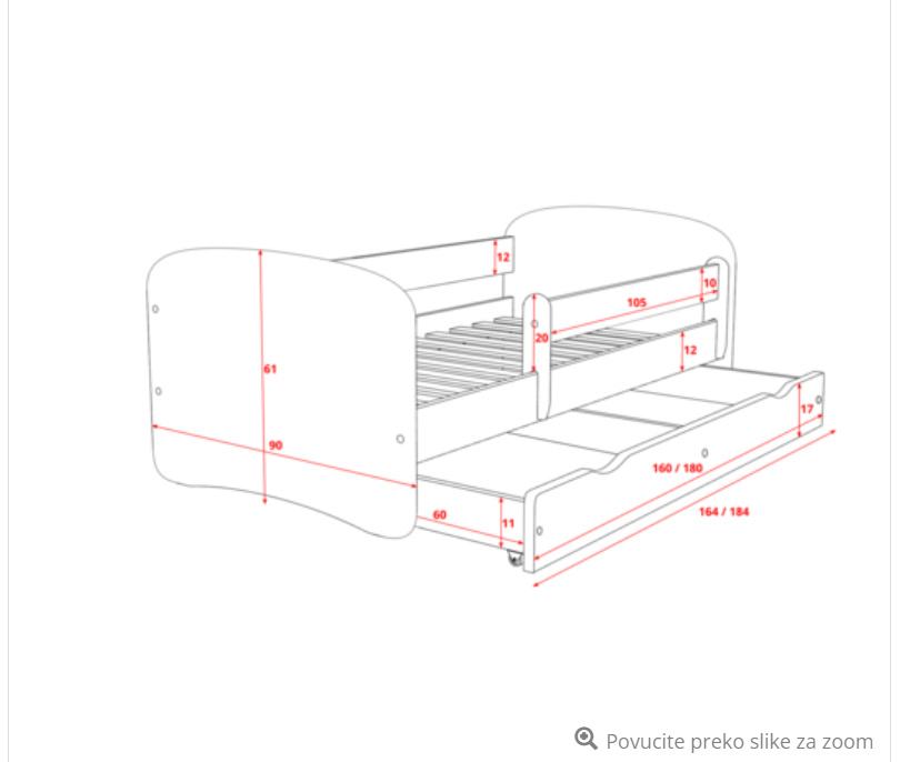 Krevet je namijenjen za dijete 18mj+ Madrac je napravljen od poliuretanske pjene visoke čvrstoće, presvučen je antialergijskom navlakom koja se može skinuti i prati.