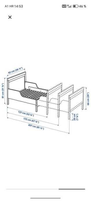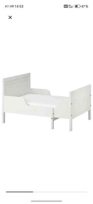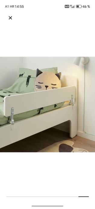 Ikea Sundvik produljivi djeciji krevet sa letvicastom podnicom i pripadajucim madracem (produljivi) plus ograda za krevet nattapa.