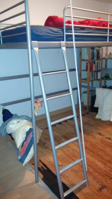 Ljestve mogu biti na lijevoj ili desnoj strani. Krevet je siv.