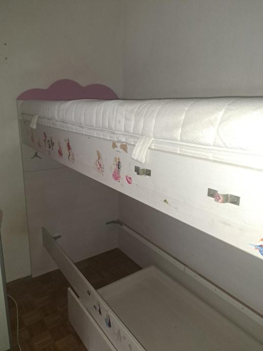 Prodajem krevet "na kat" dimenzije 175/203 /95 cm, 1 madrac i podnicu 200x90, donji dio je bez podnice i madraca dimenzije 200x80, sa pokretnim spremištem (na kotačima) dimenzije 82/ 133/ 12 cm