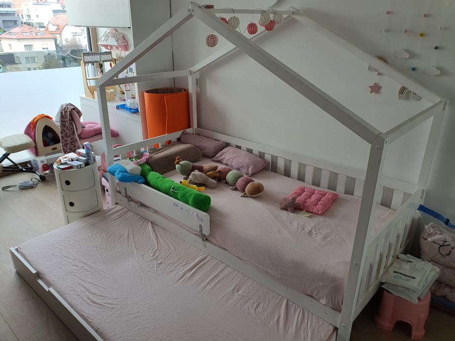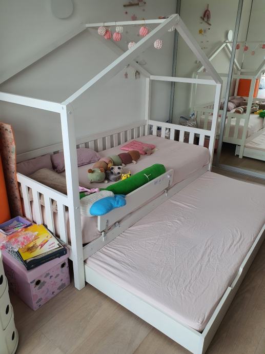 Dječji krevet dim 90x200cm sa dodatnim ležajem na izvlačenje. Korišten cca godinu i pol dana.